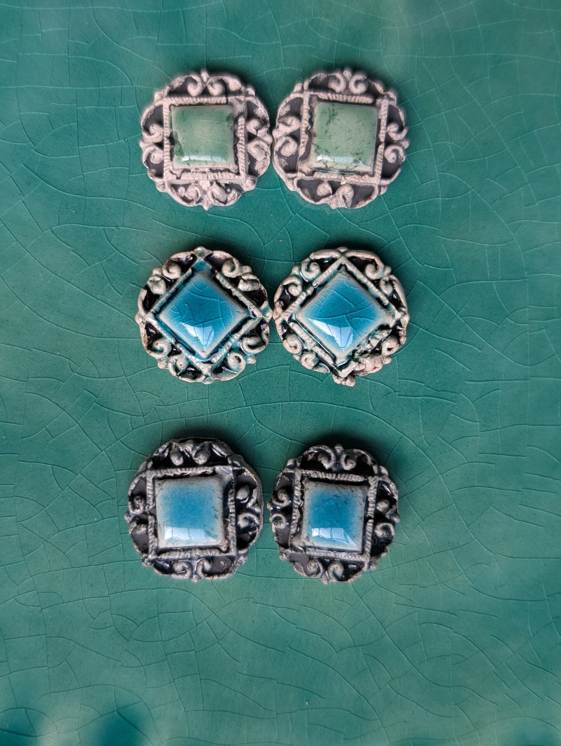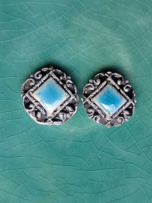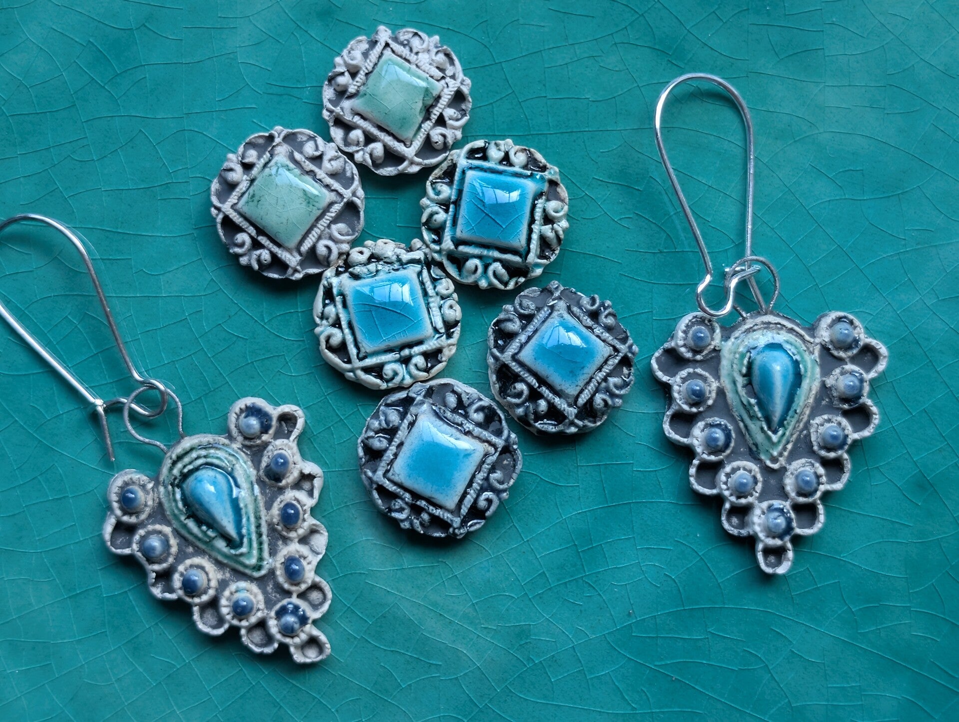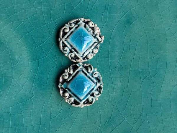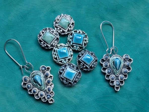 Pendientes hechos con cerámica y esmaltes de baja temperatura. Un diseño único.
