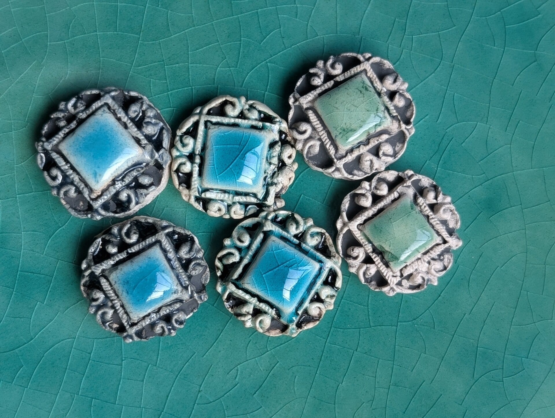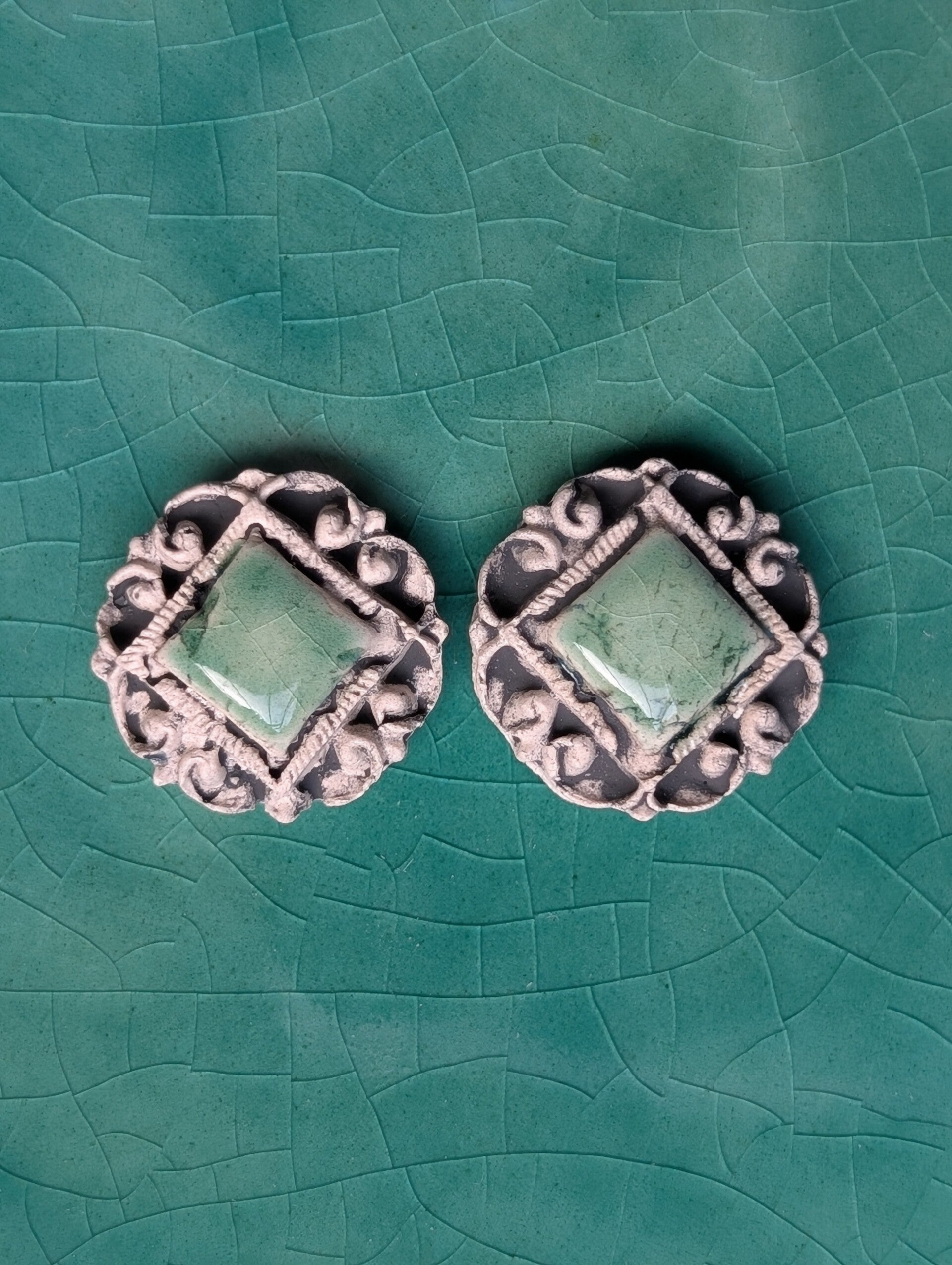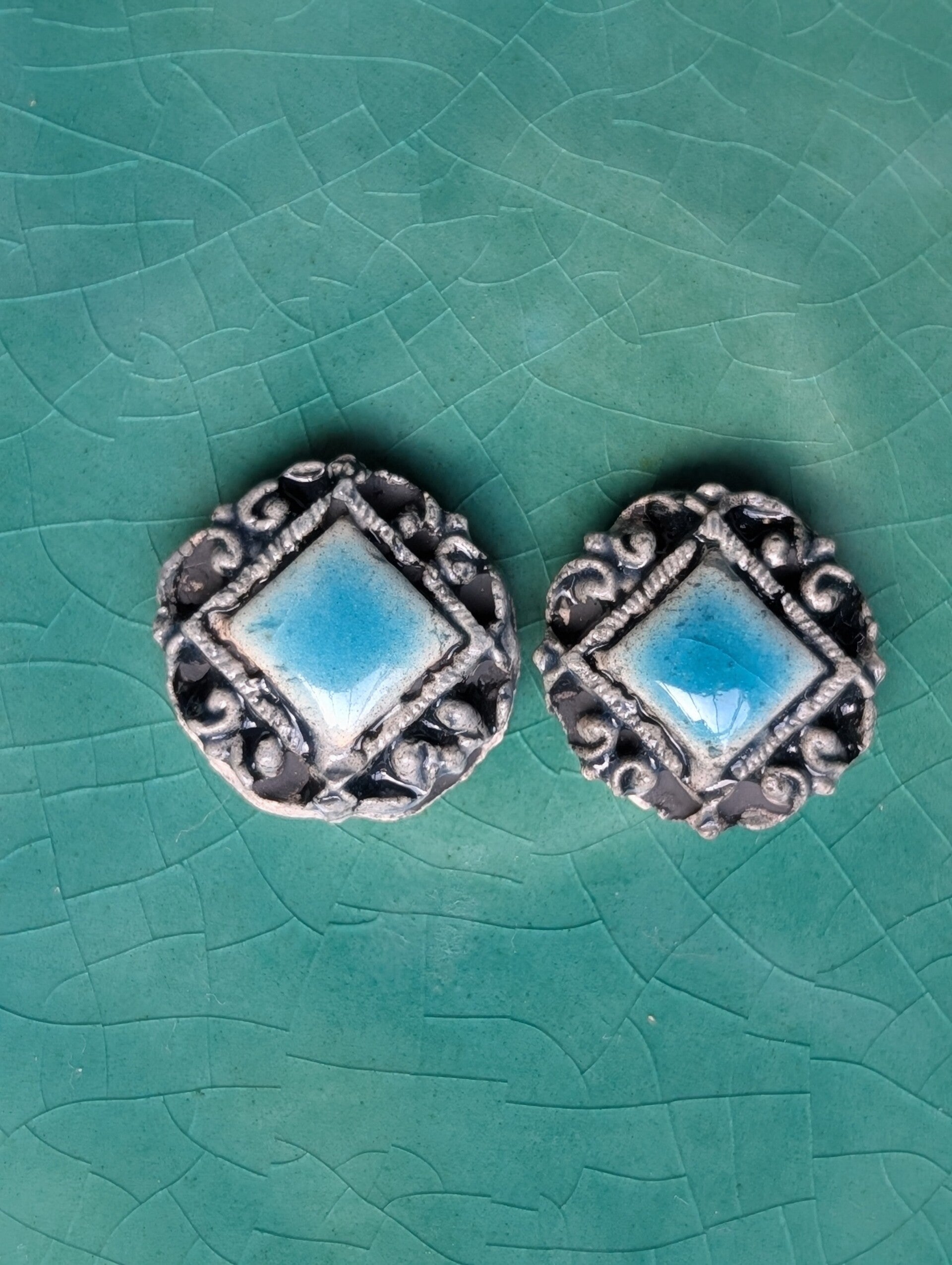 Pendientes hechos con cerámica y esmaltes de baja temperatura. Un diseño único.